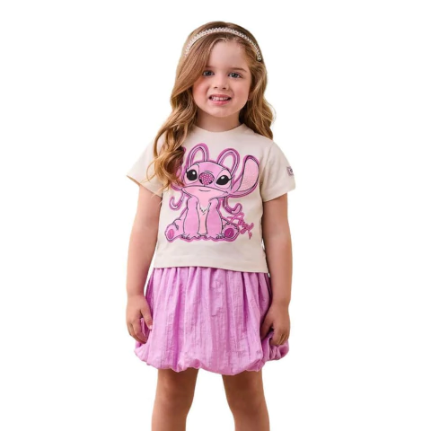 Conjunto 2 peças Angel Camiseta com Strass e Saia Balone Momi